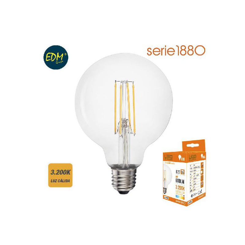 LAMPADA LED DE FILAMENTO GLOBO Ø 95MM 6W E27 3.200K TOM DE LUZ QUENTE 220/240V
