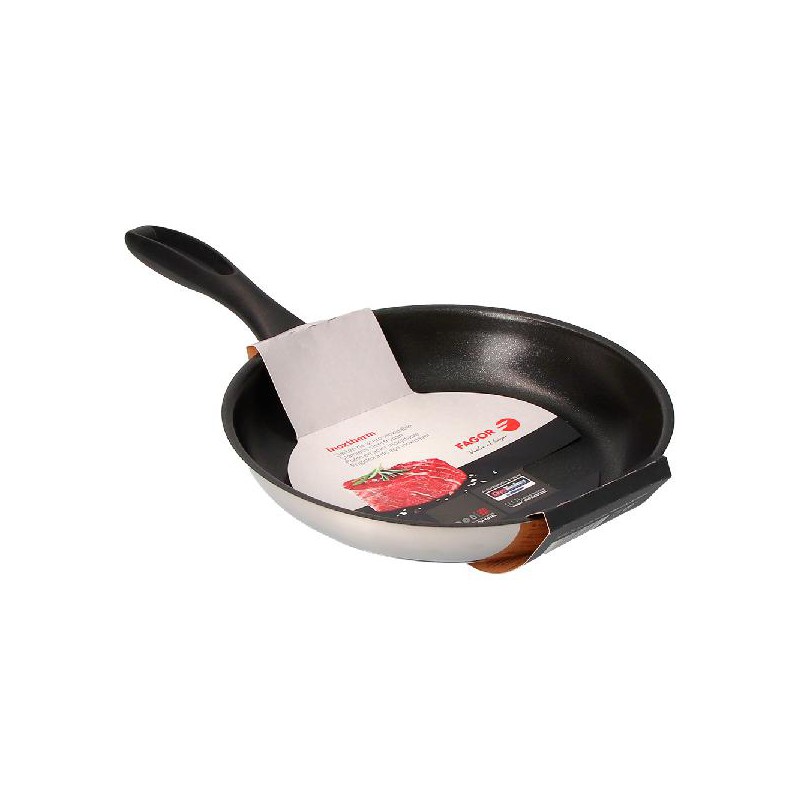 FRIGIDEIRA INOXTHERM Ø26CM AÇO INOXIDÁVEL 18/10 FAGOR. ANTIADERENTE DE TRIPLA CAMADA QUANTANIUM FANCY SILVER DIAMOND COM PARTÍCULAS DE TITÂNIO. FUNDO DIFUSOR IMPAKSTEEL COM DISCO DE ALUMÍNIO DE 5MM. LIVRE DE CADMIO E PFOA. 0,0% METAIS PESADOS. ACABAMENTO EXTERIOR POLIDO ESPELHO. ALÇAS ERGONÔMICAS DE BAQUELITE TERMO ISOLANTE. APTA PARA TODOS OS TIPOS DE COZINHA.