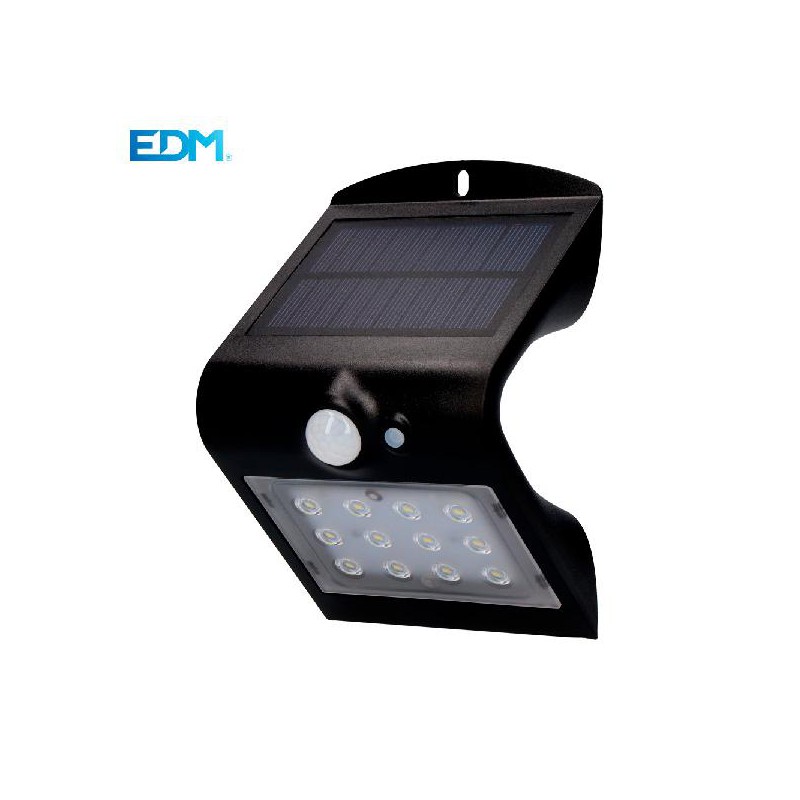 APLIQUE SOLAR 1,5W 220 LUMENS RECARREGÁVEL, TEMPO DE RECARGA 5-6H SENSOR DE PRESENÇA (2-6) DUPLA ILUMINAÇÃO: FRONTAL 6.000K (ABERTURA 120º) TRASEIRA 4.000K USO INTERIOR/EXTERIOR IP65 COR PRETA EDM. APROXIMA-SE 8H.