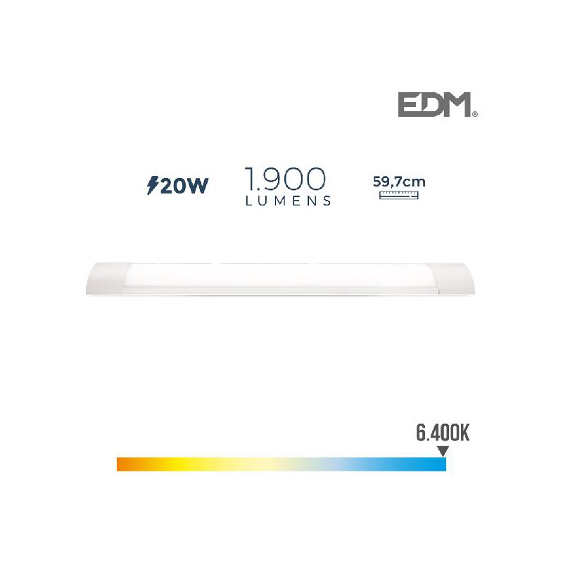 ARMADURA ELETRONICA LED 20W 1900 LUMENS MEDIDAS: 59,7X8X3,1CM 6.400K LUZ FRIA IP20 220-240V EDM 25.000 HORAS