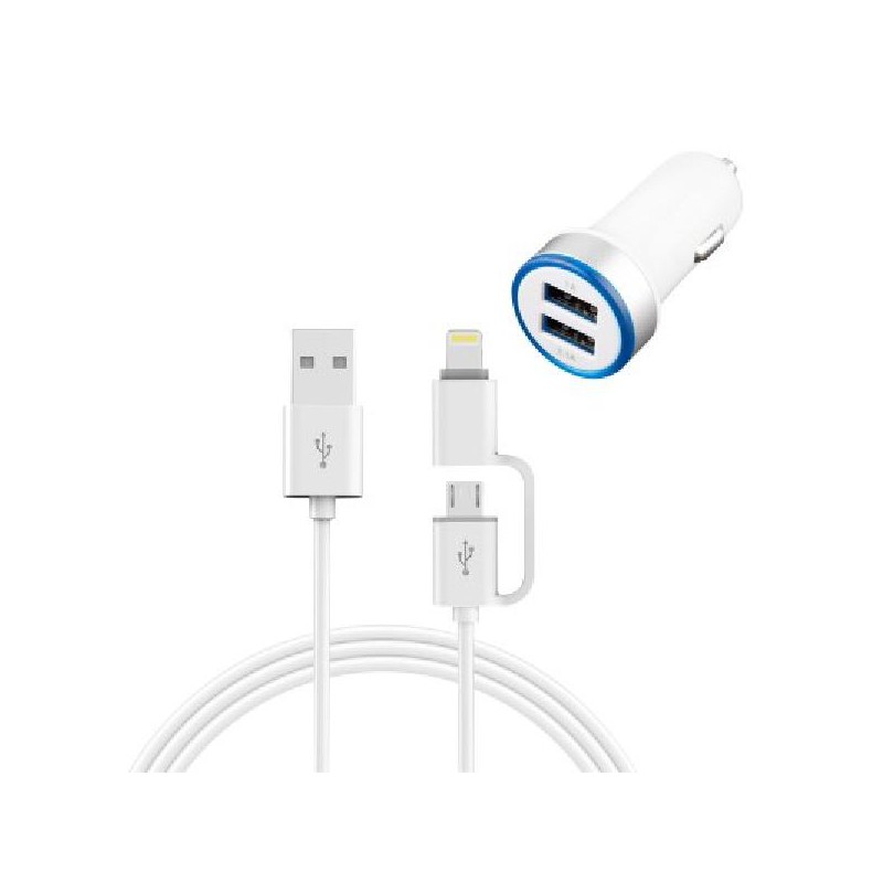 ADAPTADOR DE CARRO 2USB + CABO IPHONE/ANDR