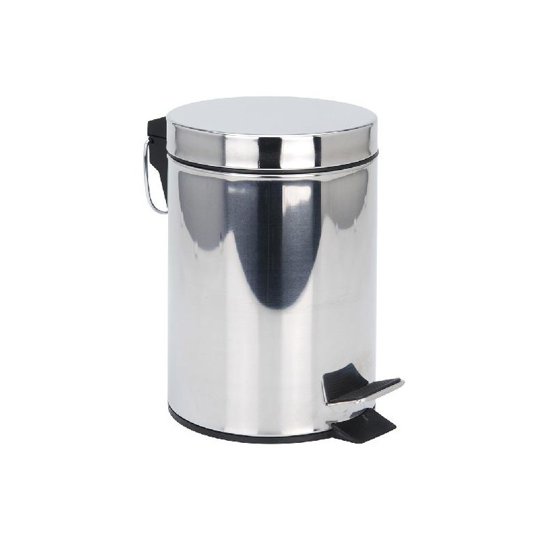 BALDE DO LIXO DE AÇO INOXIDÁVEL DE METAL COM PEDAL 3L, COM ACABADO ESPELHADO E BORRACHA DE COR PRETA NO PEDAL.16,5X24,5CM 580G Características: MATERIAL - AÇO INOXIDÁVEL COR - CROMADO MEDIDA - 16,5x24,5 cm CAPACIDADE - 3 L