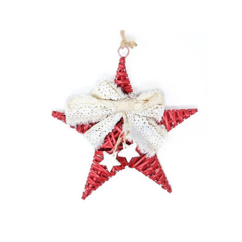 ESTRELA MADEIRA VERM. DECORADA 25CM