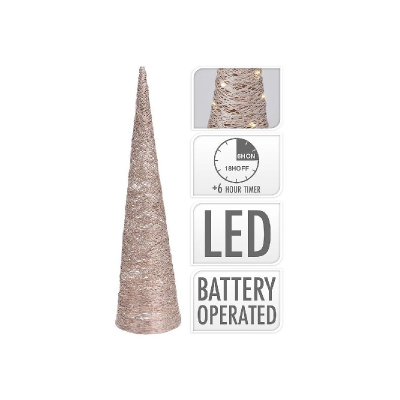 ARVORE RATTAN EM FORMA DE CONO 40 LEDS 80CM DOURADO