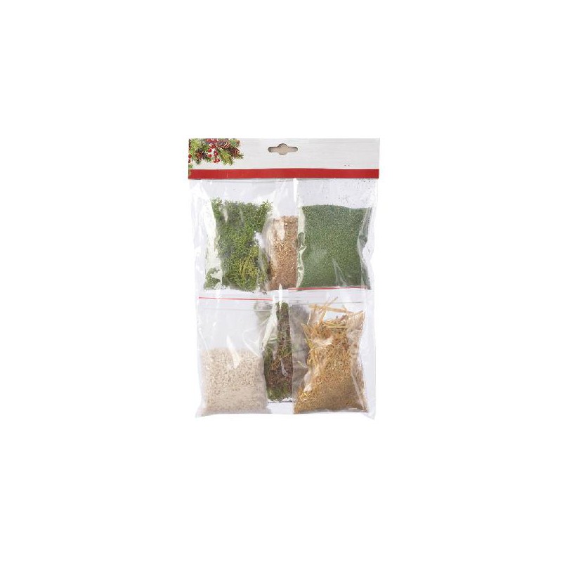 KIT DECORACAO P/PRESEPIO (MUSGO, PALHA, CASCALHO, PEDRAS, ERVAS, MUSGO ESPANHOL) 1X7,5X12CM