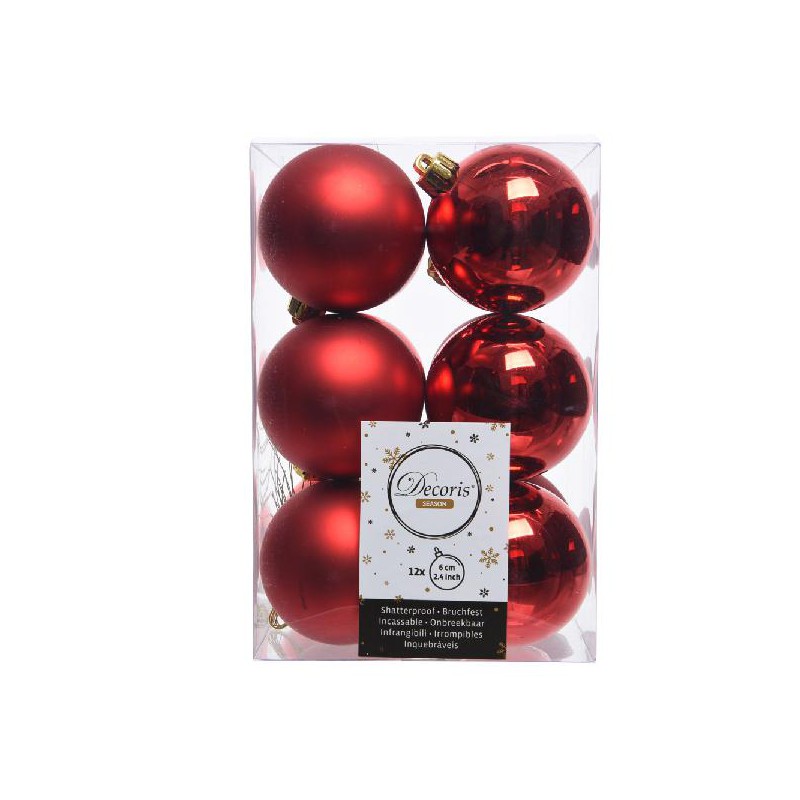 CAIXA DE 12 BOLAS VERMELHAS DECORATIVAS PARA ÁRVORE DE NATAL