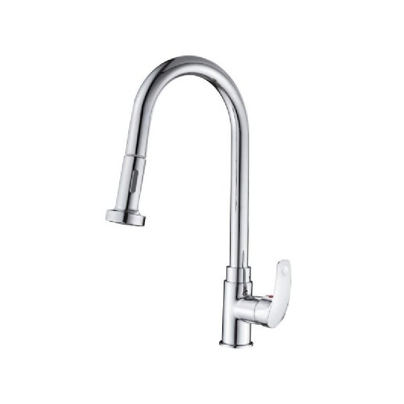 Batedeira em latão com acabamento cromado. Bico extensível. Cartucho de cerâmica e arejador. Alavanca com sistema de manuseio suave. Controle de temperatura de precisão máxima.