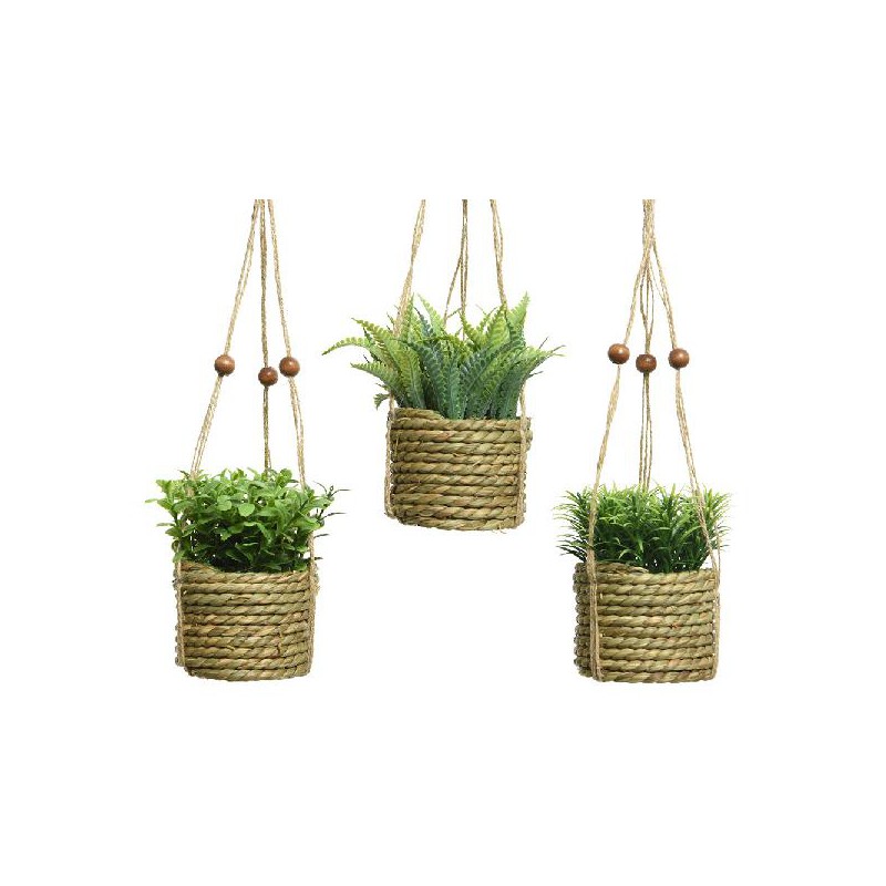 PLANTA ARTIFICIAL FLUTUANTE VÁRIOS MODELOS INCLUÍ CORDA DE JUTA PARA PENDURAR 8X12CM