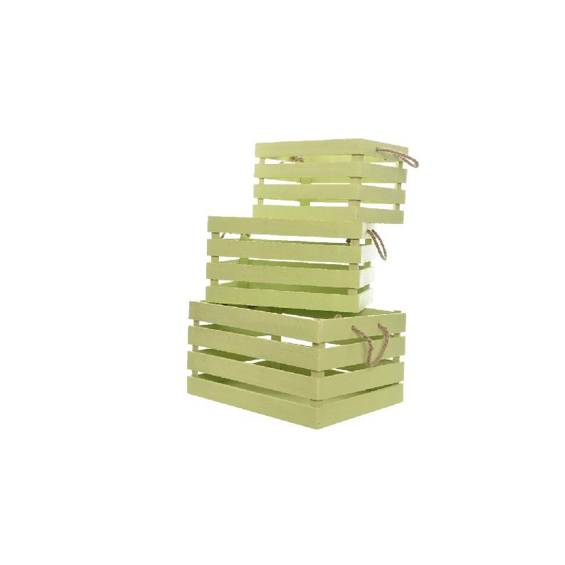 CAIXA DE MADEIRA COM ALÇA DE CORDAS SET DE 3 UNIDADES COR VERDE