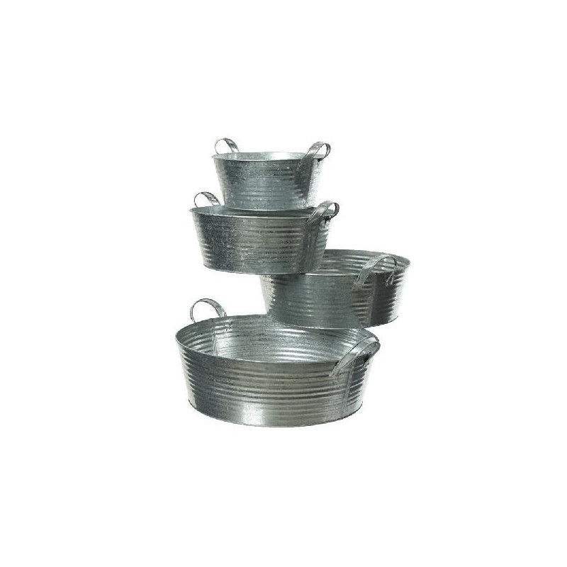 VASO ZINCO COM ALÇA SET 4 PEÇAS DIA39.5X13CM, DIA34X11.5CM, DIA30X13CM, DIA25X11CM Características: COR - METALIZADO MEDIDAS - 39,5x13 cm / 34x11,5 cm / 30x13 cm / 25X11 cm MATERIAL - ZINCO
