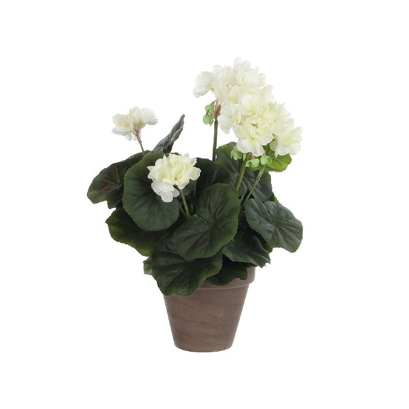 GERÂNIO COR CREME PVC EM VASO PLASTICO EFEITO NATURAL 34X20CM