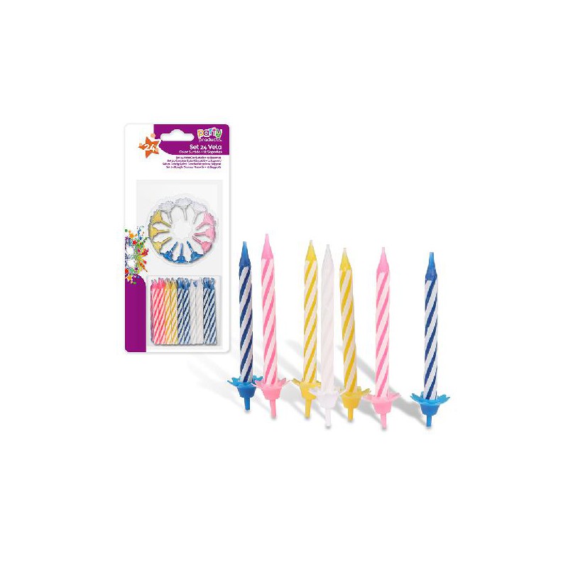 PACK 24 UN VELAS + 12 SUPORTES CORES SORTIDAS