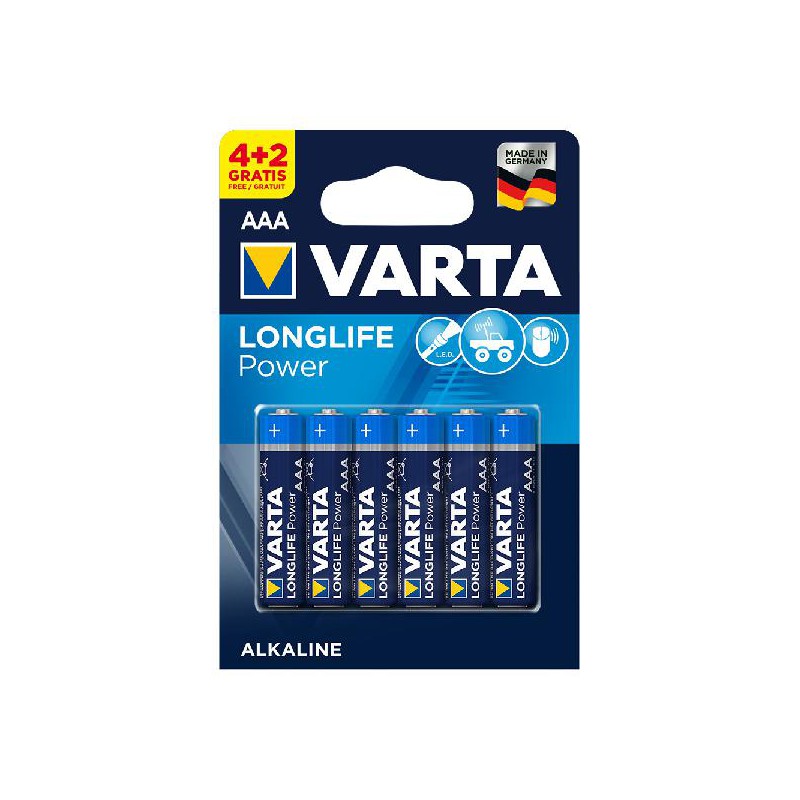 Características: MARCA - VARTA TAMANHO DA BATERIA / REFERÊNCIA IEC - AAA / LR03 TENSÃO (V) - 1,5 BLISTER UNITS - 6 pcs. TECNOLOGIA - ALCALINA MANGANESO (ZN/MNO2) MODELO PODER DE VIDA LONGA TIPO - PILHA ALCALINA