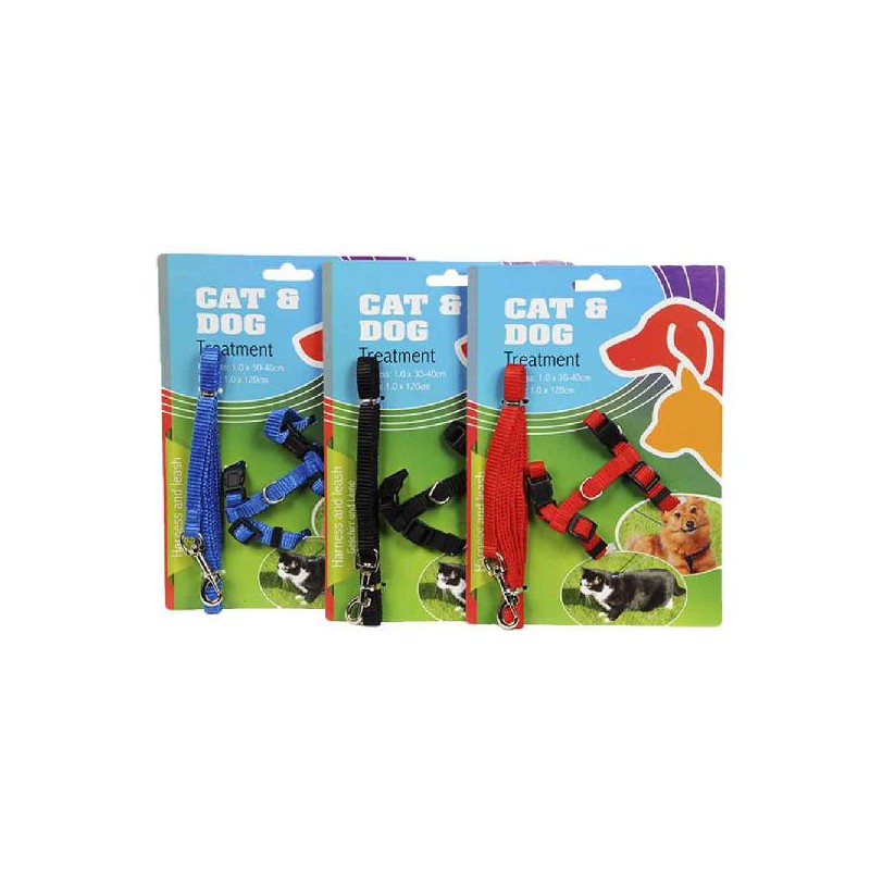 PEITORAL 30-40CM + TRELA NYLON 120CM P/CAES E GATOS