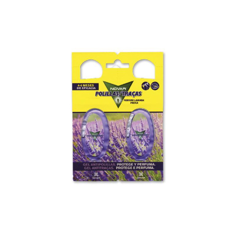 NOVAR REPELENTE TRAÇAS FRAGRÂNCIA DE LAVANDA (PACK 2 UNIDADES DE 4 ML) PROTEGE AS PEÇAS DE ROUPA DO TEU ARMÁRIO DURANTE TODA A TEMPORADA.PACK DE 2 UNIDADES DE 4ML. CAIXAS DE 24 UNIDADES