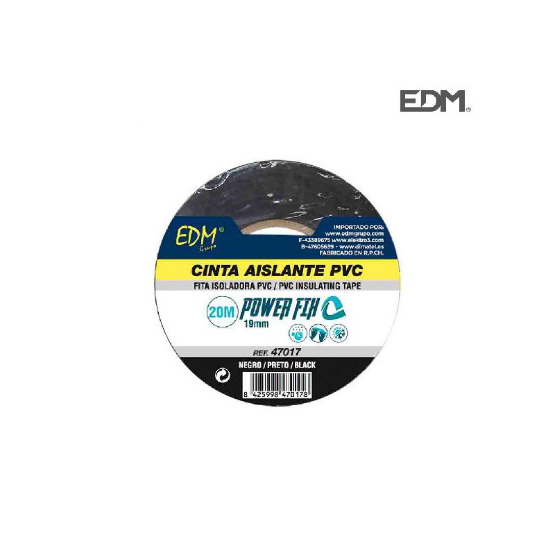 Características: COR- NEGRO MARCA - EDM MATERIAL - PVC RESISTENTE AO TEMPO - SIM TIPO - FITA ISOLANTE MEDIDA - 20 mx19 mm