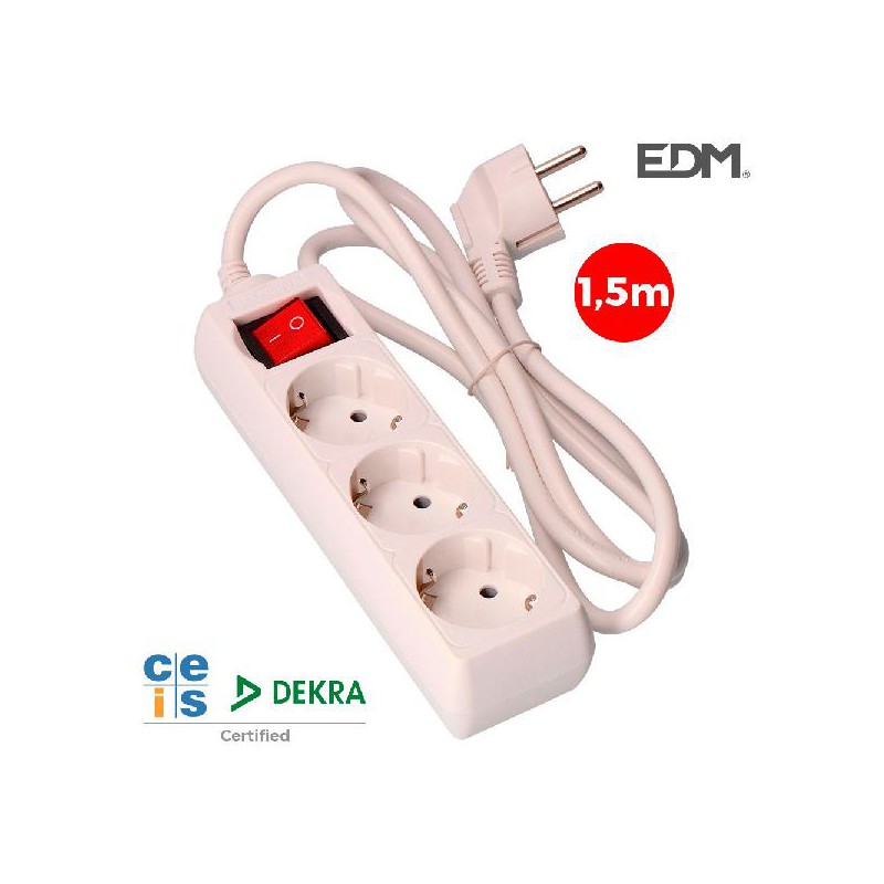 BLOCO 3 TOMADAS SCHUKO 1.5MTS C/INTERRUPTOR