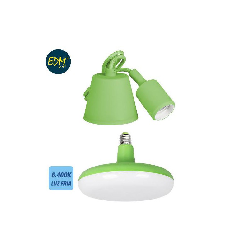 KIT DE CABO SUSPENSÃO + LAMPADA VERDE E27 24W 6.400K 1700 LUMENS