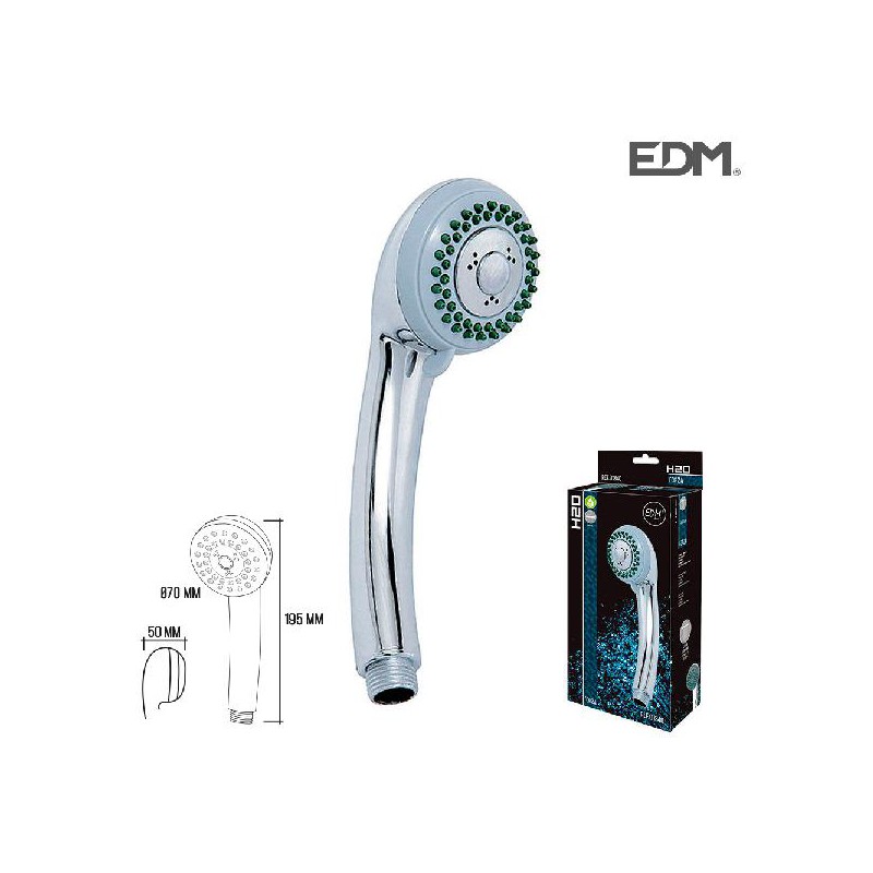 Características: MEDIDA - Ø 70x195x50 mm COR - CROMADO TIPO - CHUVEIRO MATERIAL - PLÁSTICO ABS