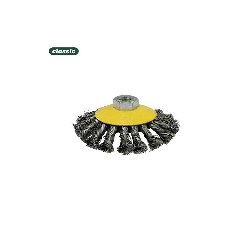 Características: MEDIDA - Ø 100 mm MODELO MOTA - FHR100 MATERIAL - FIO CORRUGADO MARCA - MOTA INSCRIÇÃO - LIMPEZA DE METAL / METALURGIA RPM MAX. - 11000 TIPO FORMA - CÔNICO CARACTERISTICAS - ALTAS REVOLUÇÕES TIPO - ESCOVA