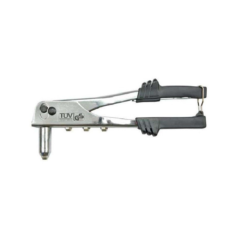 Rebite manual Vorel 70023. Projetado para lidar com rebites de aço, aço inoxidável e alumínio. Suporta rebites na faixa de: 2,4; 3,2; 4,0; 4,8 MM. Alças revestidas com forro de borracha antiderrapante.