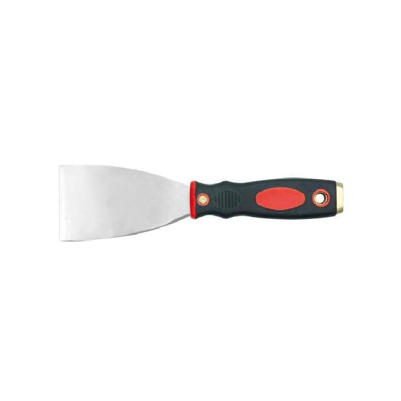 A espátula é feita de chapa de aço inoxidável polida com uma parte de trabalho adicionalmente retificada, o que melhora a flexibilidade da ferramenta. Possui cabo ergonômico perfilado, revestido com duas camadas de plástico colorido, rematado com ponteira de latão, utilizada para golpes.