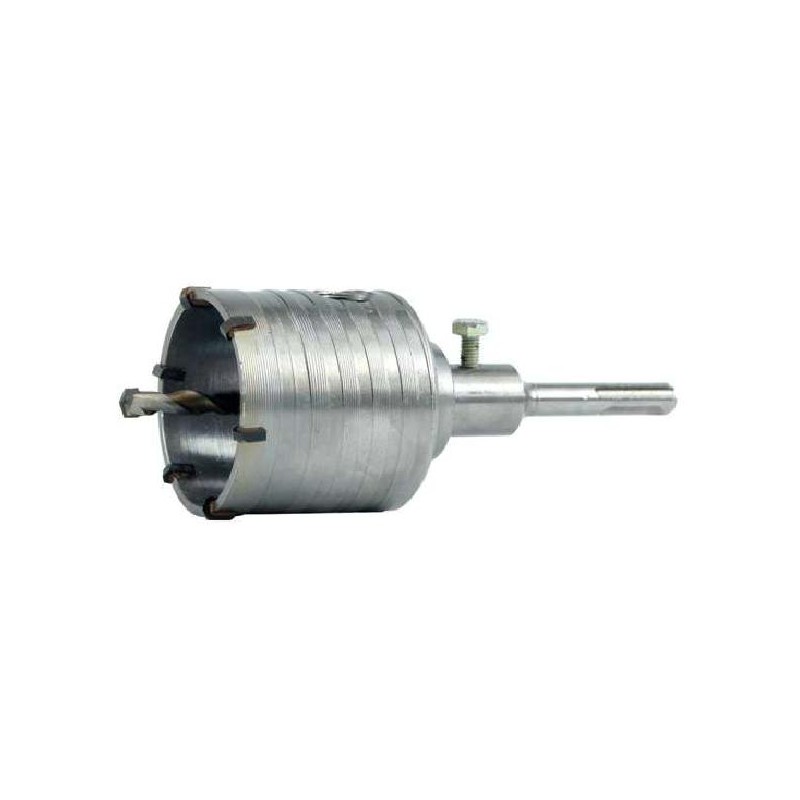 Profundidade da coroa de aproximadamente 50 mm. Broca piloto substituível colocada centralmente fi 8 mm. A superfície externa é helicoidalmente fresada para melhor drenagem do material do orifício perfurado.