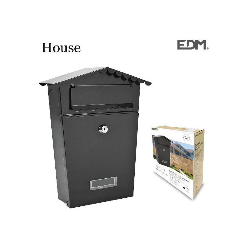 CAIXA DE CORREIO EM AÇO MODELO HOUSE PRETO MEDIDAS: 210X60X300MM INCLUIDAS 2 CHAVES E PARAFUSOS PARA INSTALAÇÃO Características: MATERIAL - AÇO MEDIDA - 210x60x300 mm COR - NEGRO MARCA EDM TIPO - CAIXA DE CORREIO