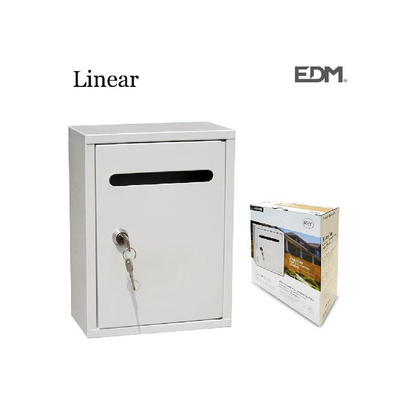 CAIXA DE CORREIO EM AÇO MODELO LINEAR BRANCO MEDIDAS: 200X75X260MM INCLUI 2 CHAVES E PARAFUSOS PARA INSTALAÇÃO Características: MATERIAL - AÇO COR - BRANCO MEDIDA - 260x200x75 mm MODELO LINEAR MARCA - EDM TIPO - CAIXA DE CORREIO