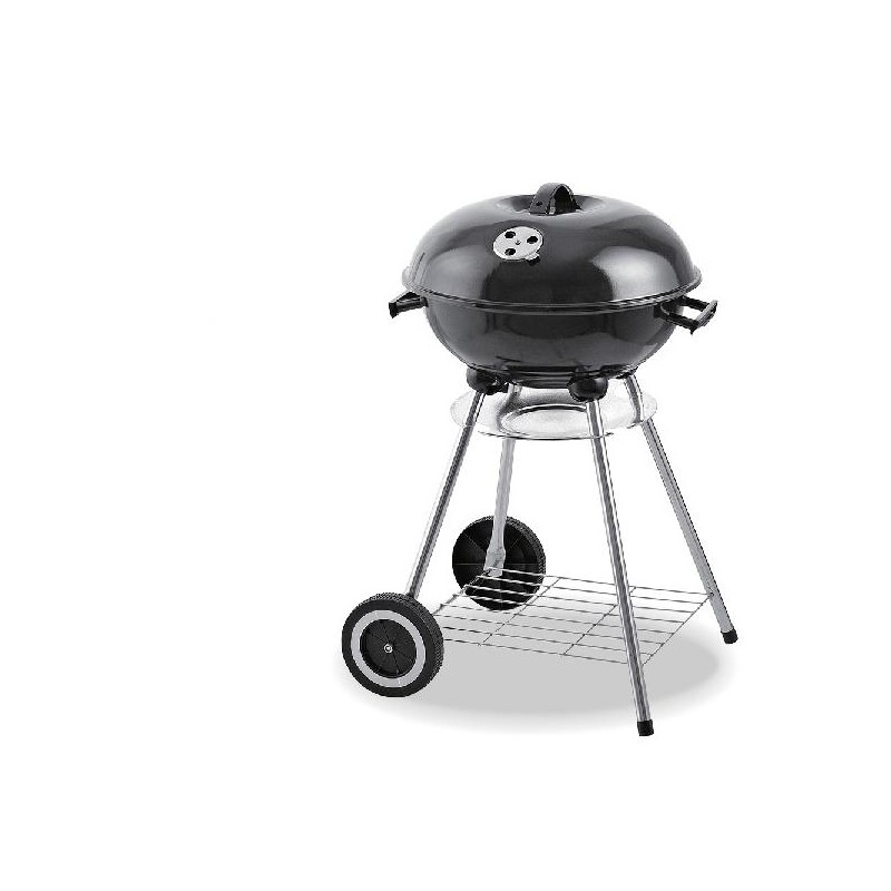 CHURRASQUEIRA METÁLICA COM TAMPA E RODAS MEDIDAS: Ø44X70CM ALTURA GRELHAS CROMADAS COM BANDEJA INFERIOR E INCLUI VALVULA DE VENTILAÇAO