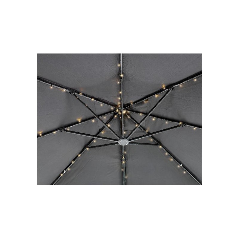 GRINALDA LED PARA GUARDA-SOL BRANCO QUENTE 72 LEDS 8X1,2M. CADA VARETA TÊM 9 LEDS. INCLUI PILHA 1XAA 600MAH. LUMEN:1 PAINEL SOLAR POLICRISTALINO. LÂMPADAS NÃO SUBSTITUÍVEIS