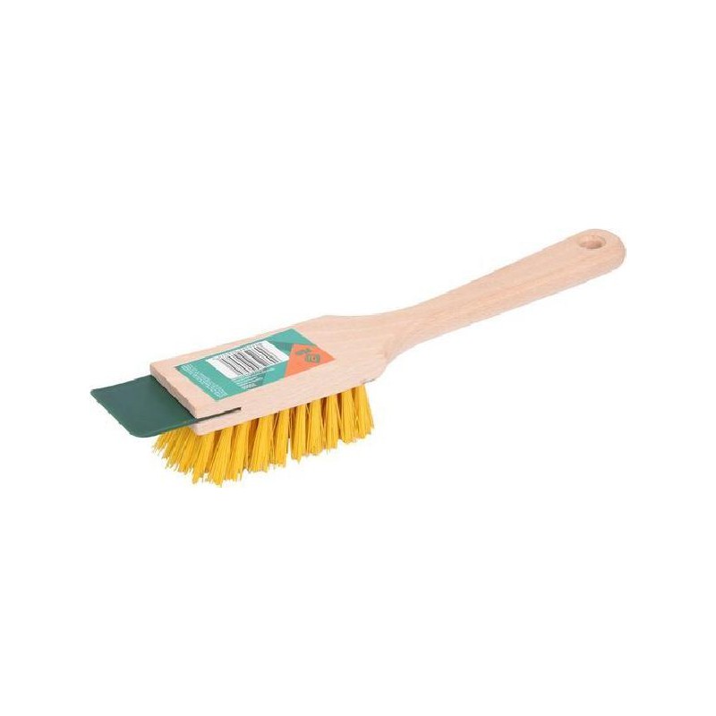 Descrição do Produto Escova prática para limpar o cortador com raspador para remover os restos de grama do alojamento. feito de madeira e plástico de alta qualidade tem cerdas densas e duras
