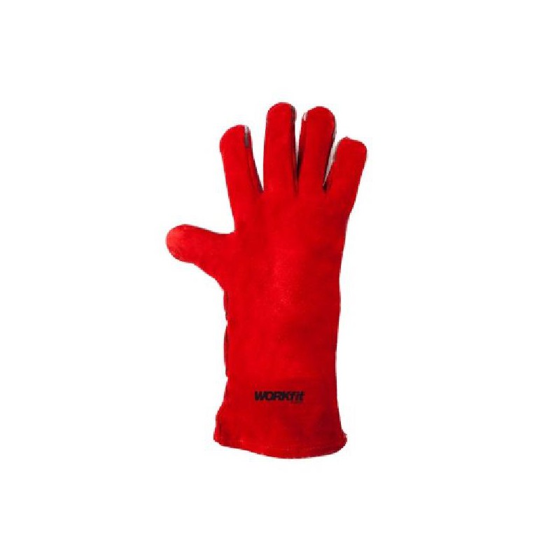 Luva de segurança. Couro split de alta qualidade. Modelo de soldador. Reforçado com costura dupla. Forma alongada para proteção adicional.
