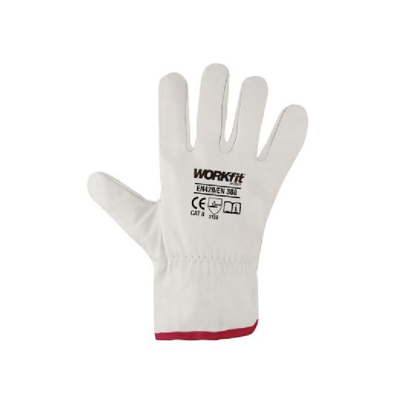Luva de segurança. Couro bovino de alta qualidade. Modelo condutor. Reforçado com costura dupla. Cor natural.