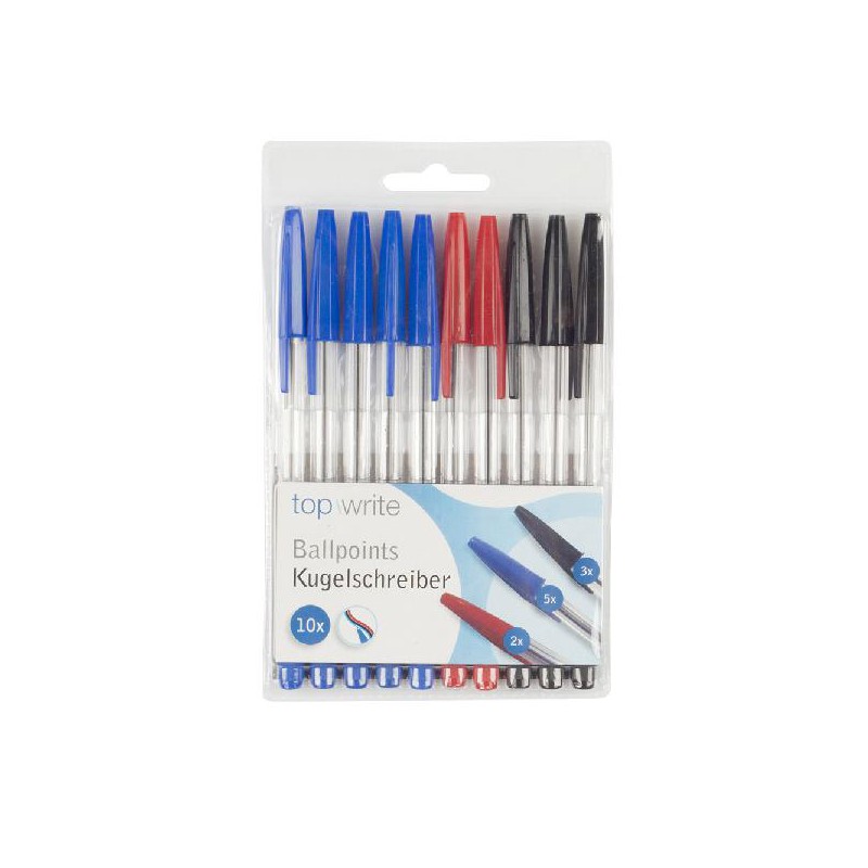 PACK DE 10 CANETAS VERMELHAS, PRETAS E AZUL