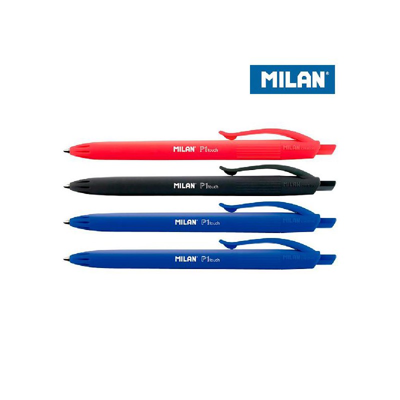 BLISTER 4 CANETAS AZUL-PRETA-VERMELHA MILAN. 4 CANETAS P1 TOUCH (2 AZUIS, 1 PRETA E 1 VERMELHA) COM O CORPO DA MESMA COR QUE A TINTA. LONGITUDE DE ESCRITURA APROXIMADA DE 1.200 METROS. PONTA 1MM. TINTA FABRICADA EM ALEMANHA. DESENHO ORIGINAL CRIADO PELO DEPARTAMENTO DE I+D DE MILAN.