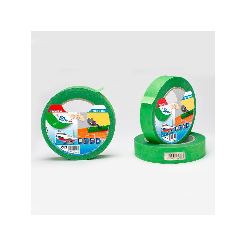 Características: TIPO - CINTA DE CARROZERO MARCA - GEKO COR - VERDE MATERIAL - PAPEL MEDIDA - 19 mm x 50 m INSCRIÇÃO - USO EXTERIOR
